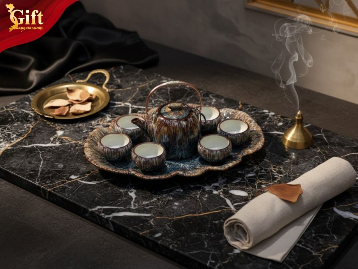 Không quá cầu kỳ, không nặng tính phô trương, bộ trà mang đến cảm giác gần gũi, tinh tế và đủ sang, đúng với tinh thần quà tặng dành cho người có gu và biết trân trọng giá trị văn hóa.