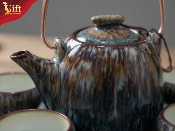 Bộ trà được chế tác từ sứ nung nhiệt độ cao, bảo đảm độ cứng, khả năng giữ nhiệt ổn định và an toàn cho sử dụng hằng ngày. Bề mặt men mịn, hạn chế bám bẩn, dễ vệ sinh – phù hợp với nhịp sống hiện đại và tần suất tiếp khách thường xuyên. Với khách hàng trung lưu, đây là lựa chọn “đáng tiền”: đẹp, bền và dùng được lâu dài.