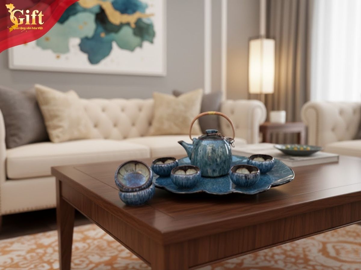 Nhờ thiết kế sang trọng, ý nghĩa văn hóa rõ ràng và tính ứng dụng cao, Bộ Trà Dáng Đà Điểu Quay Sứ Hỏa Biến Xanh Lòng Khay Xếp rất phù hợp làm quà tặng: