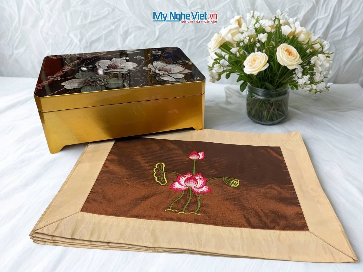 Hãy để Hộp Sơn Mài Cao Cấp Hoa Phù Dung và Bộ Khăn Trải Bàn