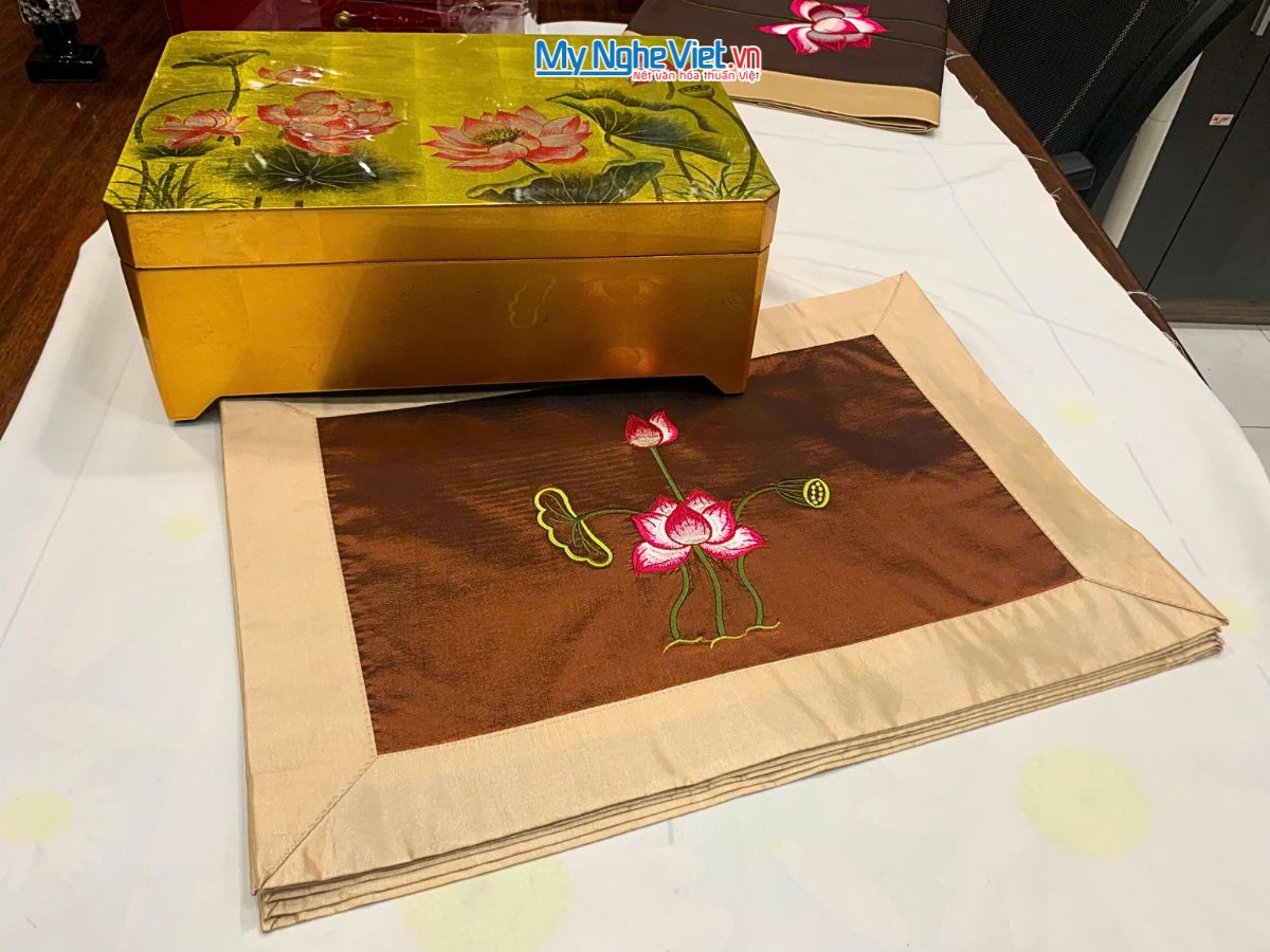 Hộp sơn mài cao cấp họa tiết hoa sen cùng bộ khăn trải bàn tinh tế chính là lựa chọn lý tưởng, mang đến sự hài hòa và đẳng cấp cho mọi không gian.