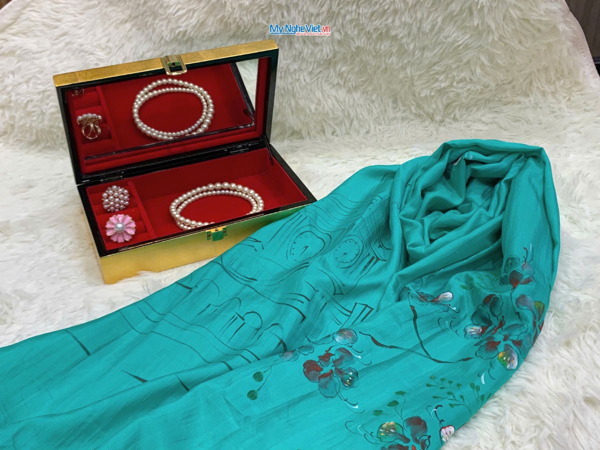 Bộ sản phẩm bao gồm: 01 hộp sơn mài và 01 khăn lụa