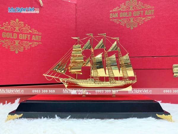 - Đặt một chiếc mô hình thuyền dát vàng 24K trong không gian sống hoặc làm việc sẽ giúp thu hút nguồn năng lượng tích cực, vượng khí dồi dào, mang lại thành công vang dội và tài lộc viên mãn cho gia chủ.