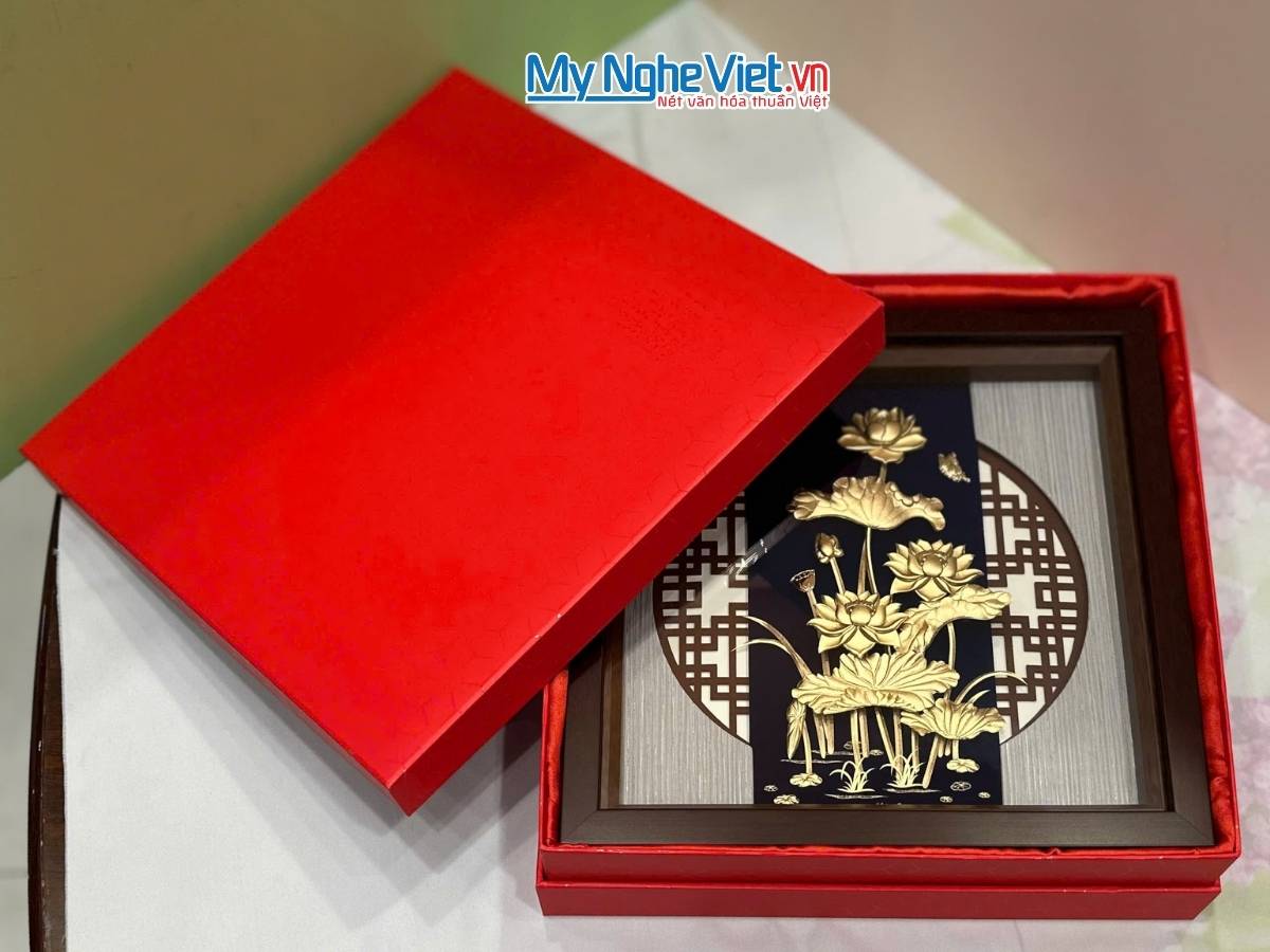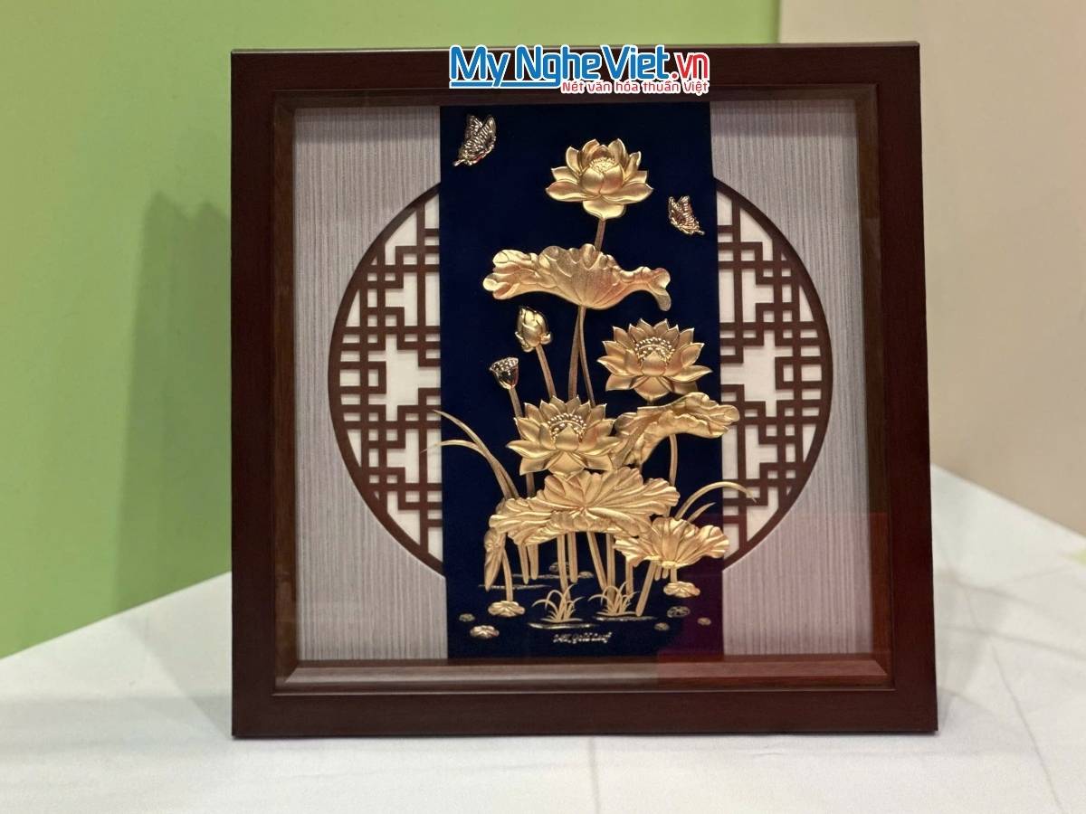 Sản phẩm Tranh dát vàng hoa sen tại showroom Mỹ Nghệ Việt cùng hàng trăm sản phẩm đồng Đại Bái khác