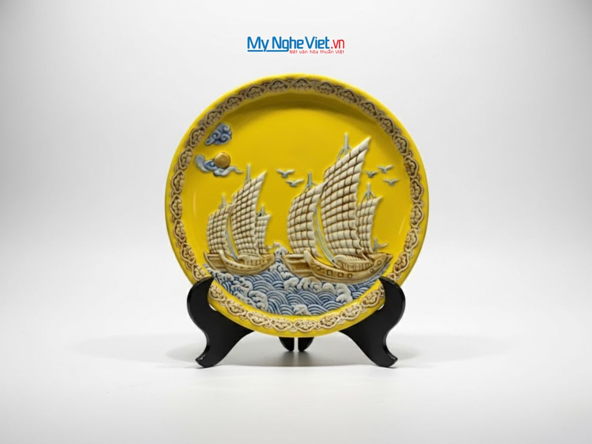 Trong kho tàng gốm sứ Bát Tràng, những tác phẩm nghệ thuật không chỉ đẹp mà còn mang giá trị phong thủy sâu sắc luôn được ưa chuộng. Đặc biệt, Tranh đĩa gốm Bát Tràng Thuận Buồm Xuôi Gió đắp nổi là một tuyệt tác kết hợp hoàn hảo giữa nghệ thuật truyền thống và ý nghĩa tài lộc, thịnh vượng. Nếu bạn đang tìm kiếm một vật phẩm trang trí cao cấp, mang lại may mắn cho sự nghiệp và kinh doanh, thì đây chính là lựa chọn không thể bỏ qua.
