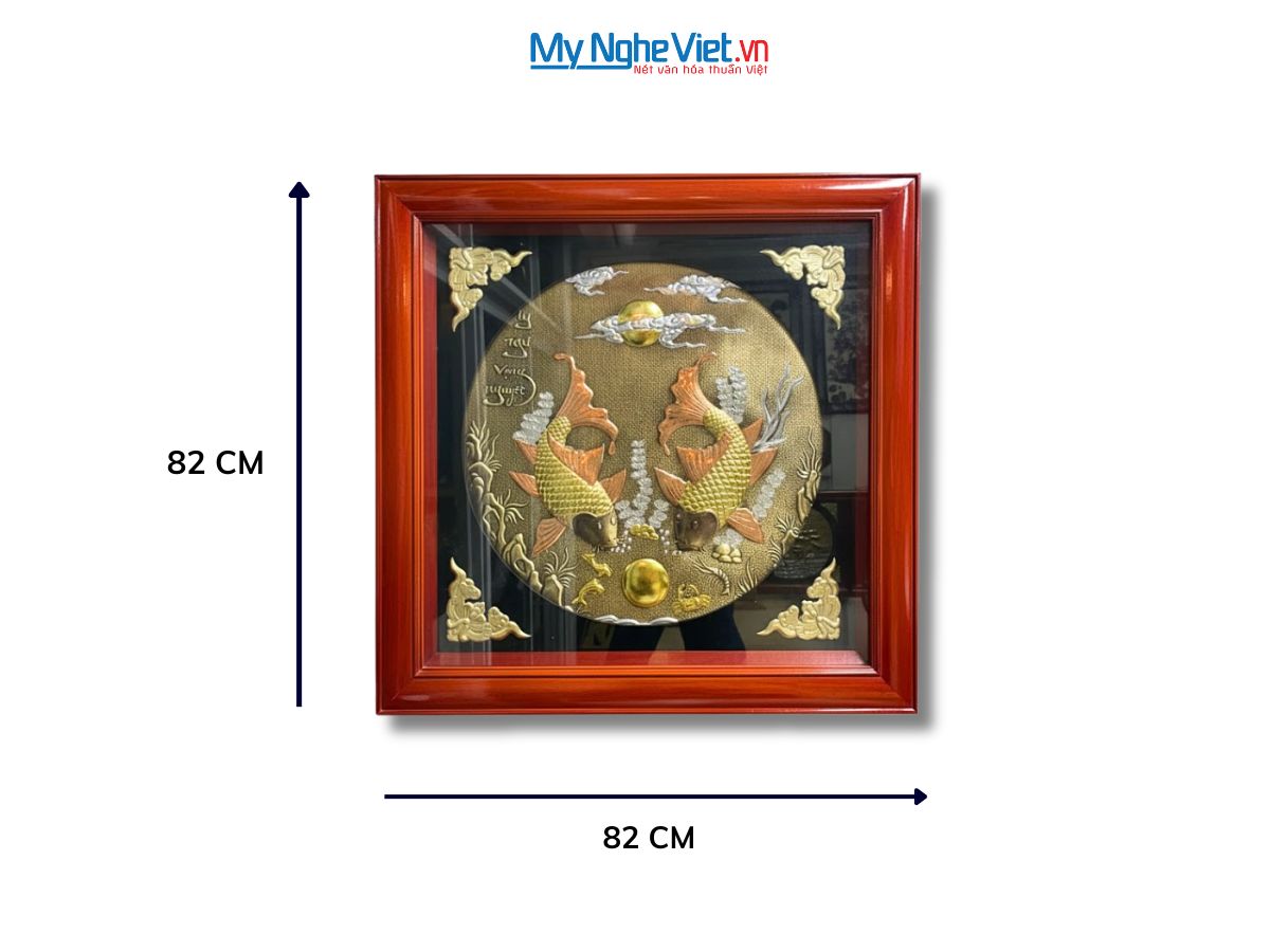 - Chất Liệu Đảm Bảo: Sử dụng Đồng Đại Bái chính gốc đảm bảo độ bền hàng trăm năm. Đối với phiên bản tranh đồng dát vàng, ánh kim lấp lánh của trăng và vảy cá càng thêm phần sống động, quý giá.