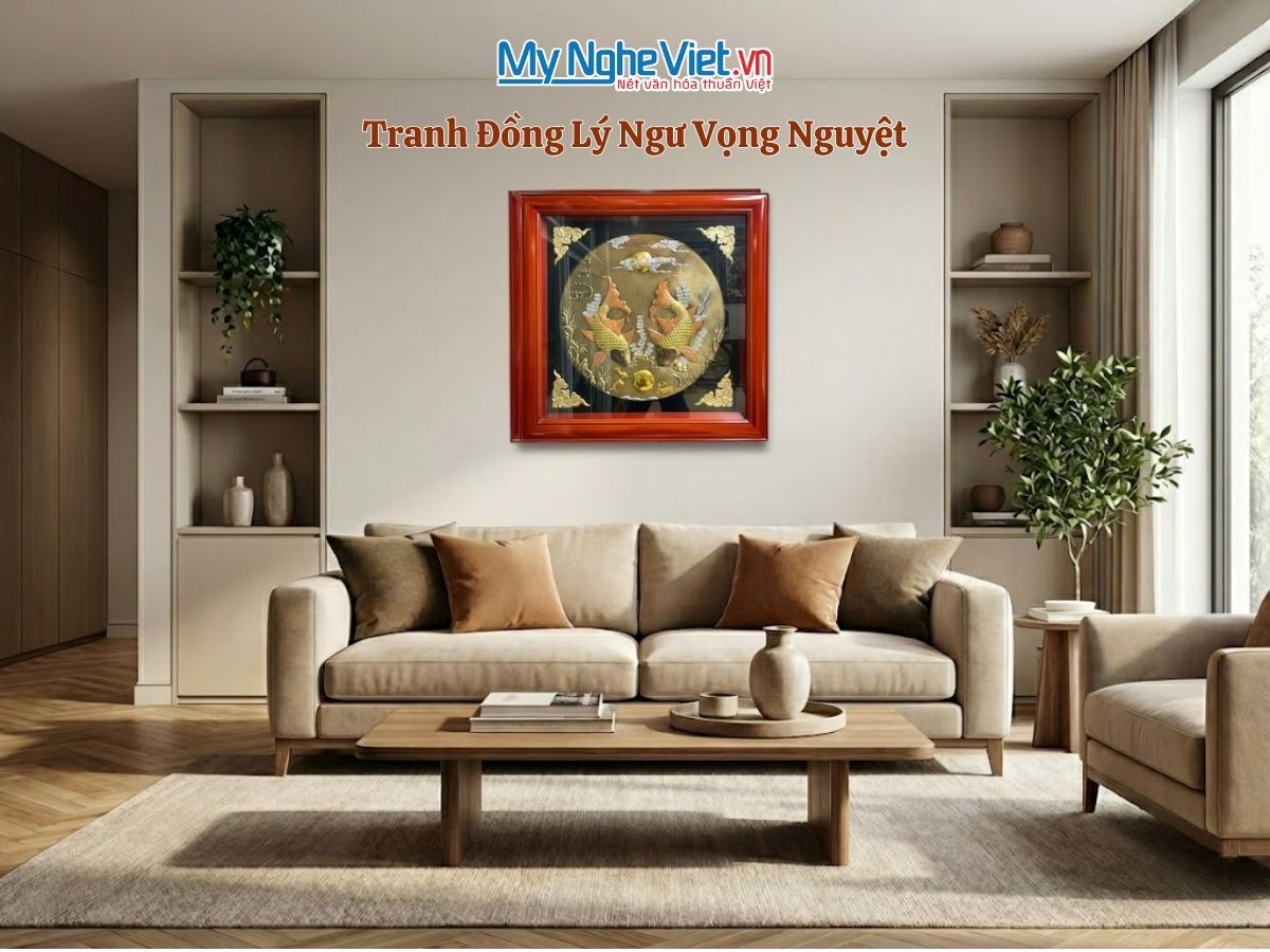 Bức Tranh Đồng Lý Ngư Vọng Nguyệt (Cá chép trông trăng) là một trong những tác phẩm kinh điển và sâu sắc nhất trong nghệ thuật dân gian và phong thủy Á Đông. Khác biệt với sự oai hùng của Mã Đáo hay sự lãng mạn của Sen Vịt, tranh Lý Ngư Vọng Nguyệt mang vẻ đẹp thanh cao, tĩnh tại và hàm chứa triết lý sâu xa về cuộc sống, sự viên mãn và trí tuệ.