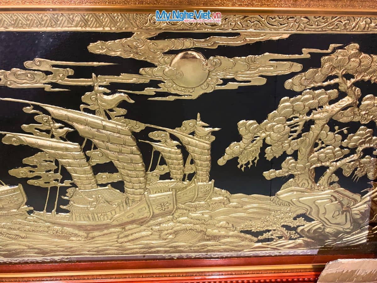 Toàn bộ quy trình chế tác là một chuỗi các công đoạn tỉ mỉ: từ việc vẽ mẫu, tạo khuôn, đúc phôi đồng nguyên khối, cho đến công đoạn gò, chạm khắc nổi 3D. Từng con sóng, từng thớ gỗ trên thân thuyền và đặc biệt là cánh buồm căng gió đều được chạm trổ chi tiết đến mức sống động như thật. Chính sự cầu kỳ, cẩn trọng này đã tạo nên độ sâu, hồn cốt và nét độc đáo, mang đậm dấu ấn cá nhân của người nghệ nhân.