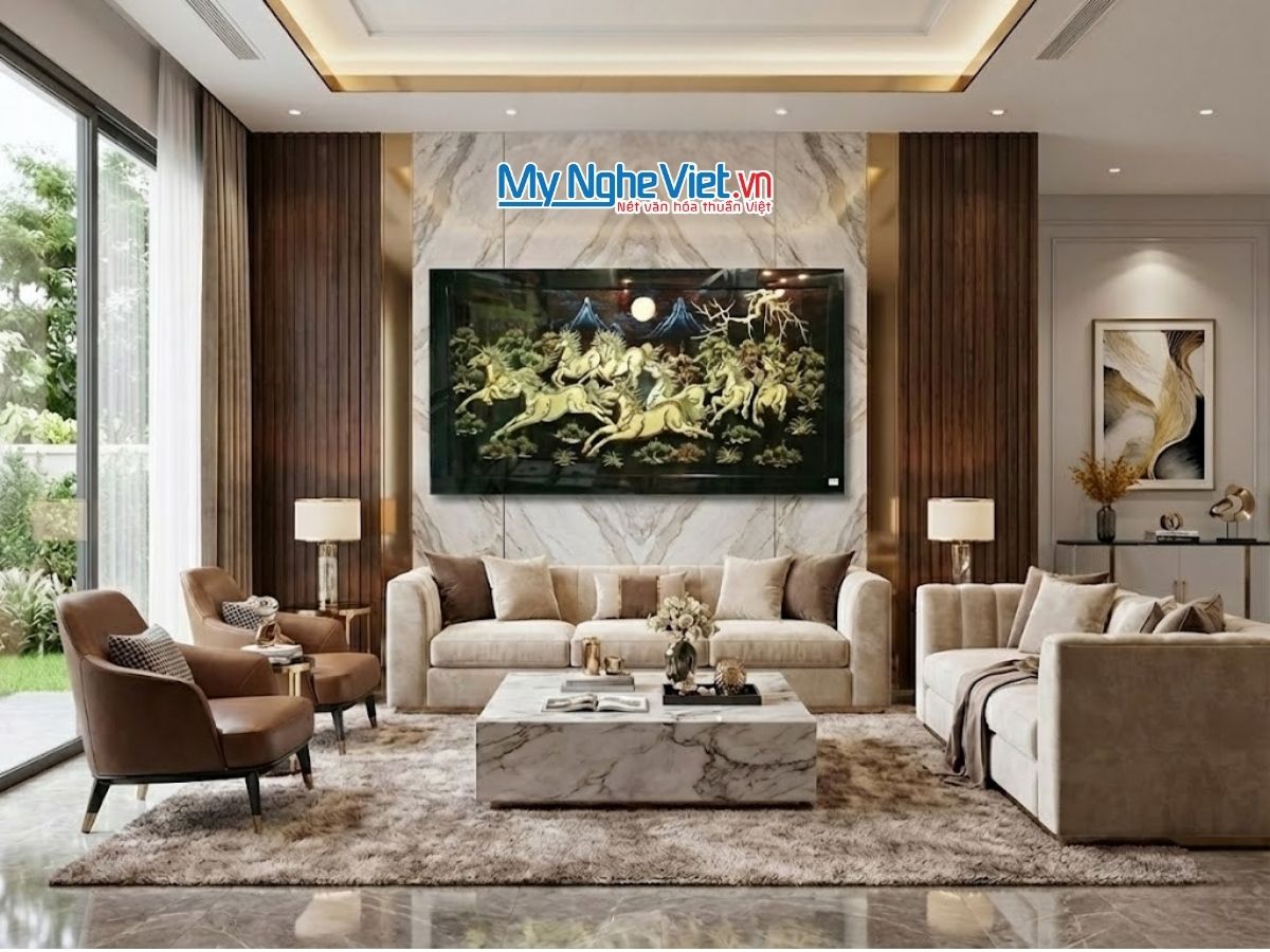 Tranh sơn mài Mã Đáo Thành Công là điểm nhấn sang trọng, đẳng cấp cho: